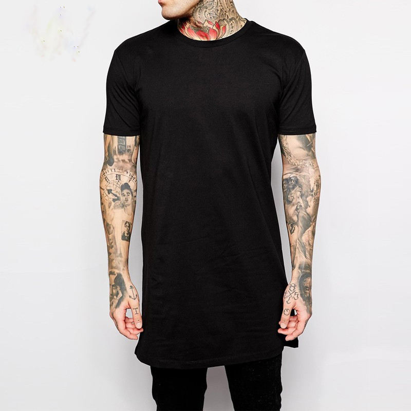 Mayorista Hombres Crop Bottom Long Custom Logo Print Algodón T Shirt Tops Hip Hop Hombres Tee Shirts