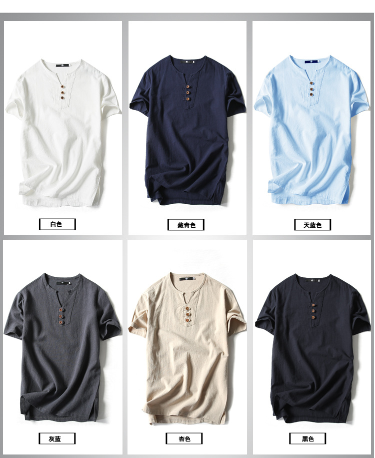 Custom Natural Men’s Cotton Linen T Shirts Fashion Short Sleeve Hemp T Shirt