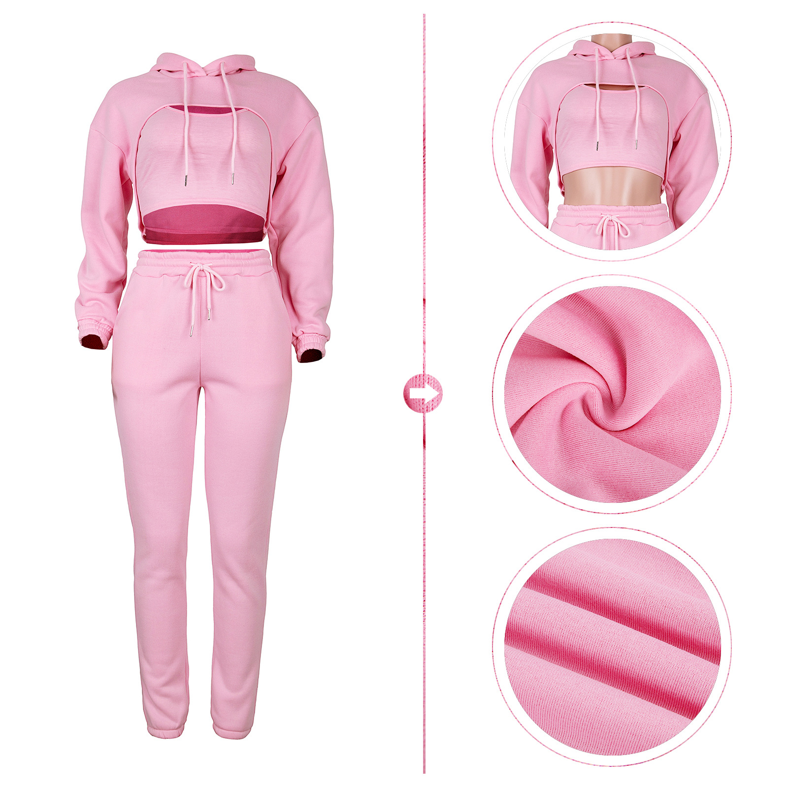 Número do modelo:Conjunto de camisola com capuz e calças de malha-6575746638